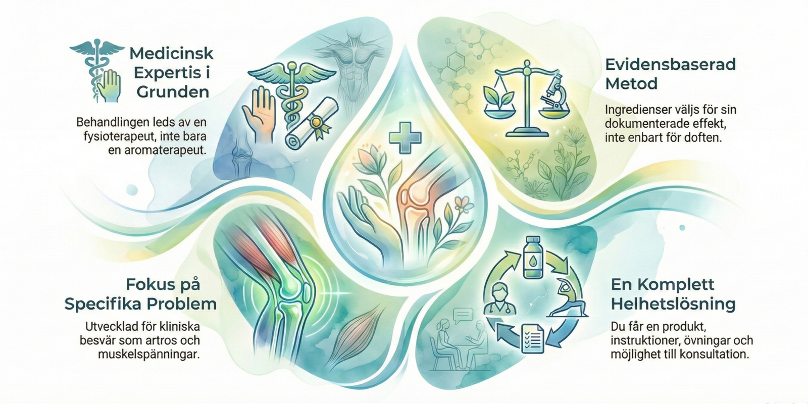 Den stora skillnaden är den medicinska och funktionella grunden. Hos Enkel Natur väljs ingredienserna ut baserat på klinisk evidens och lång erfarenhet av patientbehandling, inte bara för doftens skull. Varje produkt är en riktad lösning för ett specifikt fysiskt problem – framtagen av en legitimerad fysioterapeut med fokus på säkerhet och funktion.